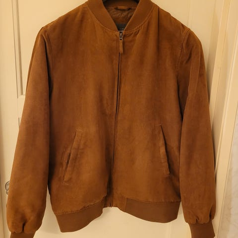 Selger en meget pen og lite brukt bomberjakke i en flott brunfarge. Jakken har en moderne, avslappet passform med klassiske ribbestrikkede mansjetter og linning. Den er perfekt som overgangsjakke og gir et stilrent uttrykk til både hverdags og finere anledninger.