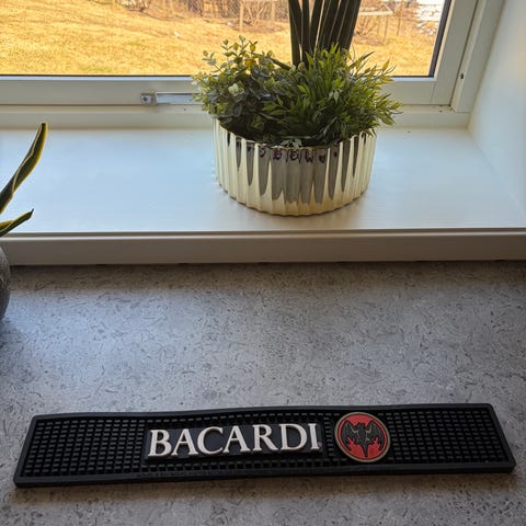 Lokket har print med tekst «Casa fundada en 1862» & Bacardi-emblem. Selve «bøtten» er sort, innside-beholder er rød, tilsvarende rød som emblemet
