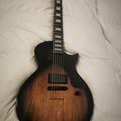 Selger min ESP LTD ec-1000 i nærmest ny tilstand. Kjøpte på Gear4music juni 2024. Meget fin gitar som er veldig god å spille på. Vanskelig å få rett farge på gitaren når jeg tar bilder. Gitaren blir nesten litt lilla når jeg tar bilder, men er heller en blanding av grå, svart og blå vil jeg si. Gitaren kommer med EMG 57/66, Floyd Rose 1000, Grover tuners og rustfrie bånd. Selges med en polstret slitt bag som fortsatt kan brukes, og vil være bra å ha for sending. Bare å sende meg melding hvis du lurer på noe. Selger den for 12000 med polstret bag inkludert frakt. Ingen bytter. Reint salg da jeg prøver å tynne ut stallen.