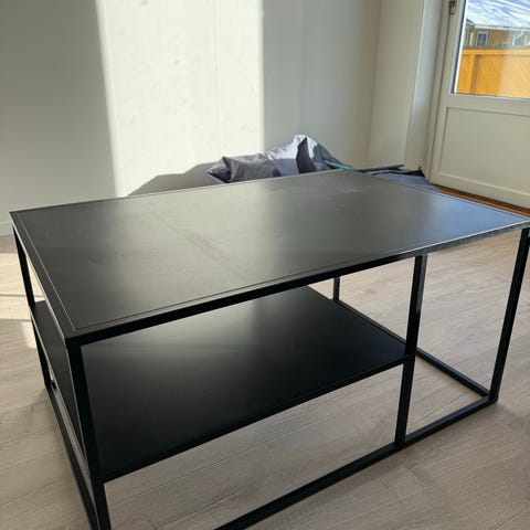 Pent salongbord fra IKEA, kjøpt nytt i 2021. Noen små bruksmerker, nesten ikke mulig å se. Fargen er mørk eik/sort. Selges på grunn av flytting. Må hentes senest 08.03