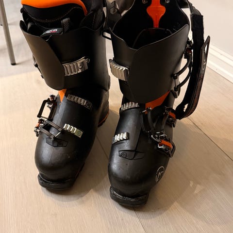 Salomon X Max alpinstøvler i svart og oransje. Str 30-31 (tilsvarer eur. 46).