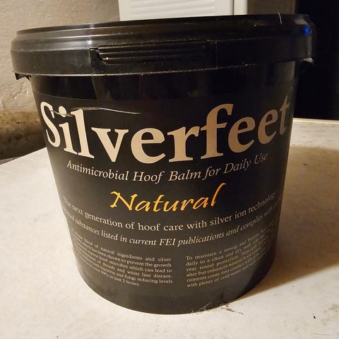Begge produktene er beregnet til utvendig bruk på hestens høver og brukes som en del av generell hovhygiene og -pleie. Innholdsmengde fremgår av emballasjen på bildene. 2,5 literen er bare brukt litt av, leire er brukt litt mer av men mye igjen ( brukt hansker ved bruk)