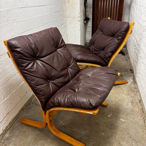 Stolene står hjemme hos mine foreldre. Siden jeg uansett må hente de der, kan jeg tilby gratis levering i Trondheims-området. Dette forutsetter at du kjøper begge 2.