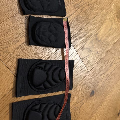 Star knebeskyttere i svart. Polstret front for støtdemping og beskyttelse ved aktiviteter på hardt underlag, for eksempel innendørsidrett eller trening på gulv. Elastisk materiale som trekkes utenpå kneet for å gi støtte og dekning rundt kneleddet. Leveres som et par.