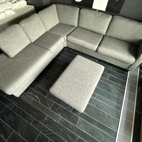 Selger en pent brukt hjørnesofa fra Hjellegjerde. Kjøpt på Møbelringen i 2018. Mye god bruk igjen. Putene kan vaskes og er vendbare.