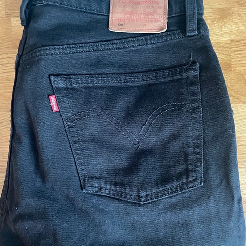 KIs beskrivelse: Levi's 501 jeans for dame i størrelse L med livvidde W32 og lengde L28. Buksen er i blå denim laget av bomull. Klassisk 5-lommers modell med knappgylf og skinnpatch med 501-logo bak i linningen.