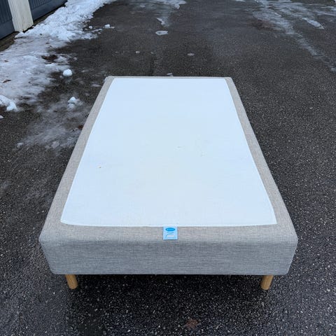 IKEA enkeltseng 120x200 (30cm høyde) med overmadrass. Ca 5 år. Sengen har grå ramme og bein i eik, som gir plass under sengen (20cm). Hvit overmadrass, ca 2 år. I god stand. Har vært brukt madrassbeskytter.