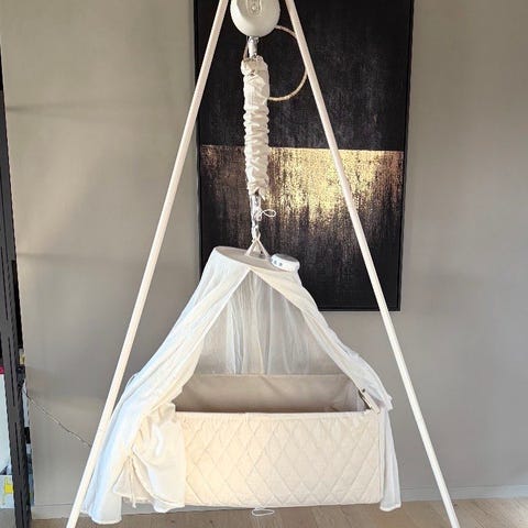 Selger en pent brukt moonboon classic bundle vugge med flat bunn og connect basic motor. Alt fungerer som det skal.