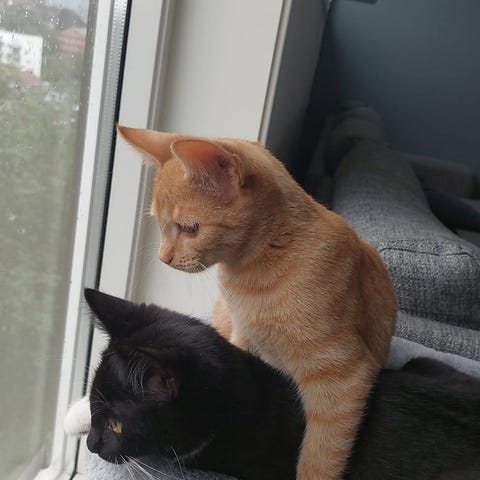 en kastrert hannkatt og en sterrilisert hunnkatt