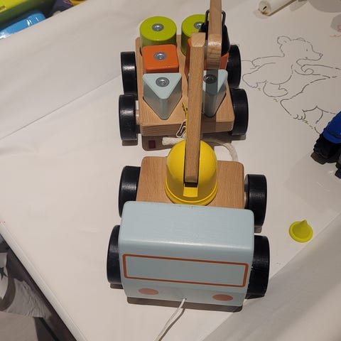 Laget i tre og følger med et utvalg verktøy og utstyr.
