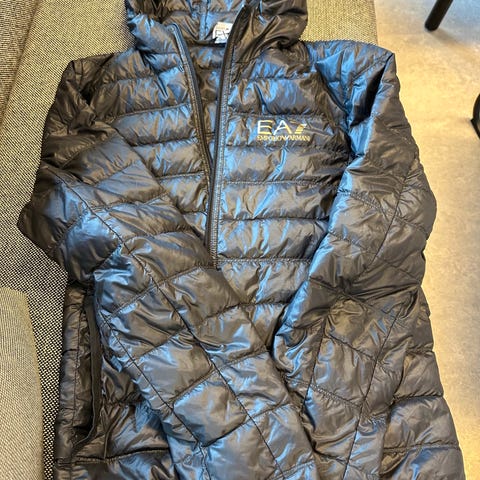 Armani EA7 dunjakke for herre i størrelse XS. Jakken er svart og har lett, vattert dunfyll med EA7-logo på brystet. Egnet som lett ytterjakke i kjøligere vær. Kjøpt i 2023 men har ingen synelige bruksmerker. Unisex. Ny pris er 2000kr