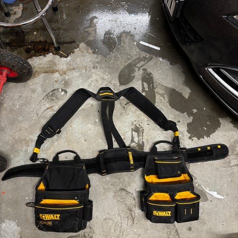 Stanley verktøybelte i svart med flere lommer og holdere for oppbevaring av håndverktøy og tilbehør. Beltet har justerbar rem for tilpasning rundt livet og er egnet til bruk ved ulike typer håndverks- og monteringsarbeid. Laget i slitesterkt materiale med tydelig Stanley-logo på fronten.