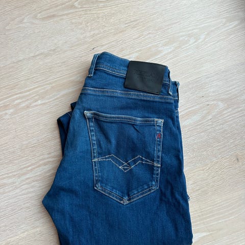 Replay Grover straight fit hyperflex jeans for herre i størrelse M med livvidde W31 og lengde 32. Buksen er i blå denim og laget av bomull. Klassisk 5-lommersmodell med glidelåsgylf og knapp i livet. Passer til hverdagsbruk og kan kombineres med ulike overdeler for et avslappet uttrykk.