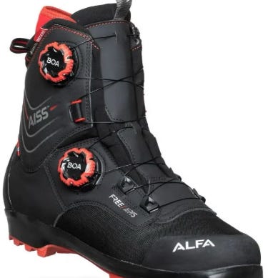 Alfa Free Aps skisko i størrelse 37. Modellen er en høy skistøvel med BOA-snøresystem på siden for enkel justering. Materiale er i Gore tex.