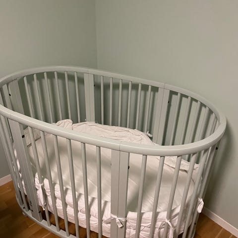 Hvit Stokke sleepi seng med hjul og madrass. Noen bruksmerker, ellers i god stand. Original Stokke sengekant og formsydd laken medfølger. Kjøpt ny til barn født i 2016. Brukt av to barn og de siste åra stått lagret. Røyk- og dyrefritt hjem.