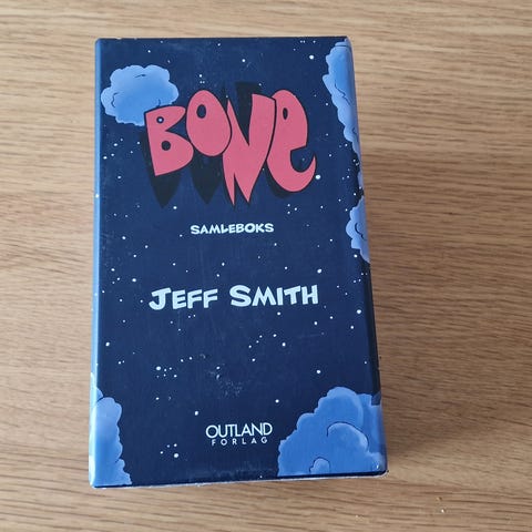 Bone tegneseriebok. Innbundet utgave med illustrert omslag. Boken inneholder tegneseriehistorier om karakteren Bone i et fantasypreget univers. Passer for lesere som liker grafiske romaner og tegneserier. Egner seg til lesing hjemme eller som del av en samling med tegneserier.
