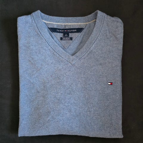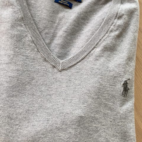 U.S. Polo Assn. genser,i bomull. Den har V-hals, lange ermer og ribbestrikkede kanter nederst og ved ermene