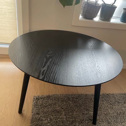 Salongbord, sofabord, rundt, sort, svart.