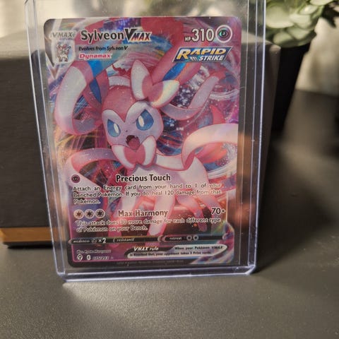 Pokémon Sylveon GX samle kort. Kortet viser Pokémonen Sylveon i GX‑versjon med angrep og HP‑verdi trykket på forsiden. Standard Pokémon‑kortstørrelse, med illustrasjon på forsiden og klassisk Pokémon‑bakside. Egnet for samling og spill i Pokémon Trading Card Game.