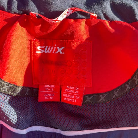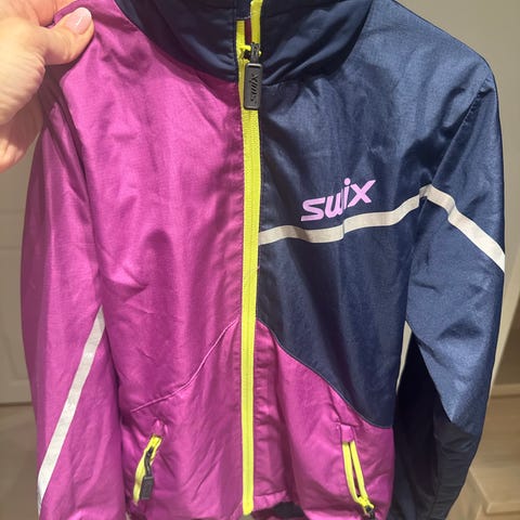 Swix junior jakke i størrelse 12–14 år. Jakken er hovedsakelig lilla med svarte felt og kontrastsømmer. Glidelås i front. Refleksfelt på rygg og sider for bedre synlighet. Ventilasjonshull under ermene. Egnet som ytterjakke til aktiviteter utendørs, for eksempel ski og annen trening for barn og unge i alderen ca. 12–14 år.