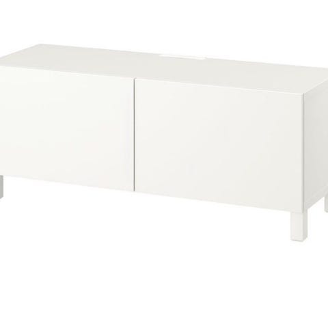 Hvit Bestå kombinasjon selges samlet. Et skap på 120x43x38 og et skap på 60x43x38. Noen synlige riper og merker, men ellers i fin stand. Blitt brukt som tv benk, så det største skapet har hull til ledninger i bakplate. Har stått direkte på gulv, så det medfølger ikke ben.