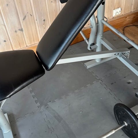 Solid treningsbenk der både sete og rygg kan justeres til ulike vinkler.