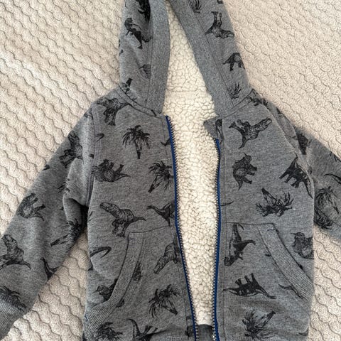 Jakke fra Name It med bilde av motorsykler. Str 92. Polyester på yttersiden, og bomullsfôr inni. Hetten kan tas av. To lommer, og refleks på baksiden. Strikken nederst på ene jakke ermet har røket, så den er ikke stram rundt håndleddet. Ellers i god stand. Se bilder.