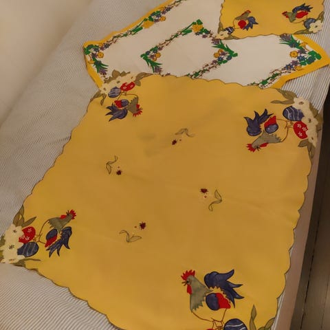 To grytekluter, to håndbroderte duker, m.m. selges samlet
