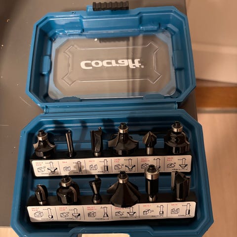 Fresestål sett for overfres med flere ulike profiler. Settet leveres i treetui med oversikt over de forskjellige fresene på innsiden av esken. Inneholder ulike typer fresestål for blant annet kantprofilering, falsing og spor. Egnet til trearbeid med overfres der det er behov for forskjellige profiler og dimensjoner.