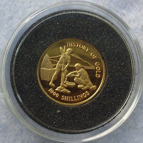 Proof gullmynt i kapsel.