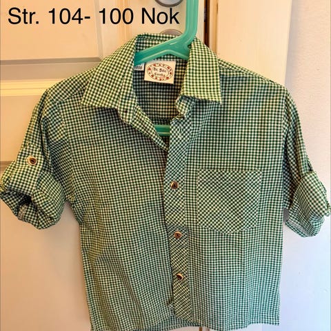 Rutete skjorter fra HM str 3-4 år. Hvit skjorte fra Hust&Clare str 98 (3 år). Lyseblå striper fra ClubXpris str 98/104.