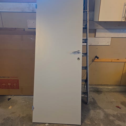 Branndør med glass. Måler 100 x 212 cm. Solide og veldig tunge. Jeg har 2 stk. B-30.