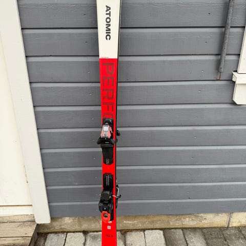 Atomic Redster XT 130 alpinski i rød farge med integrerte Atomic X-Cruise bindinger. Skiene har en lengde på 130 cm og en svingradius på 10,5 m. Midtbredde er 69 mm, med mål 109–69–90. Modellen er egnet som carvingski til preparerte løyper, for lettere og mellomnivå kjørere, for eksempel barn eller ungdom. Bindingene er justerbare innenfor et visst skostørrelsesområde og er tilpasset alpinbruk i bakke.