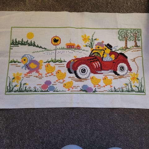 Vakker detaljrik, håndbrodert påskeduk. Størrelse ca. 180 x 140 cm. Nøyaktig arbeide. Framstår i veldig pen stand, ren og nystrøket. Laget i Ryfylke. Fastpris kr. 790,-.