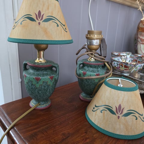 Gammel keramikk bord lamper. Bredde 45 og høyde 54 cm. Pris per stik.
