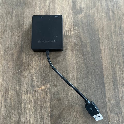 Lenovo HDMI to VGA adapter i svart. Adapteren har HDMI-hannkontakt i den ene enden og VGA-hunkontakt i den andre, og brukes for å koble en enhet med HDMI-utgang til en skjerm eller projektor med VGA-inngang. Egnet for kompatible PC-er, bærbare og andre enheter med HDMI-port som skal tilkobles eldre skjermer eller projektorer med VGA.