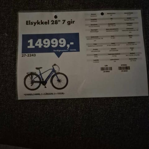 Motoren fungerer og gir assistanse, men jobber ganske høyt og lager en tydelig lyd når den er i bruk. Sykkelen selges derfor som den er, og prisen er satt deretter.