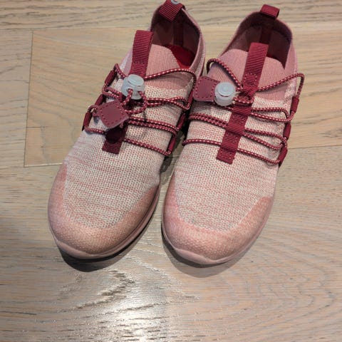 Reima joggesko for barn i størrelse 30, tilpasset jente. Skoene er rosa med hvit såle og detaljer i kontrastfarge. Overdelen er i tekstil og syntetisk materiale med pustende meshpartier. Modellen har elastiske lisser kombinert med borrelåsrem øverst for enkel av- og påkledning. Innvendig er det myk polstring rundt ankel og hæl. Yttersålen er mønstret for godt grep på ulike underlag. Egnet som hverdagssko og til lek ute.