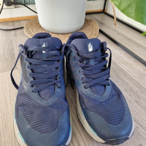 The North Face joggesko i størrelse 42. Modellen er i svart med snøring og overdel i pustende mesh og syntetisk materiale. Skoene har gummisåle med mønster som gir godt grep, og er egnet til hverdagsbruk, lett trening og turer på variert underlag. Goretex.