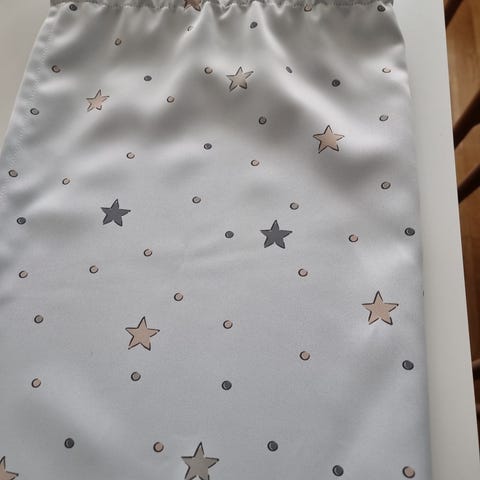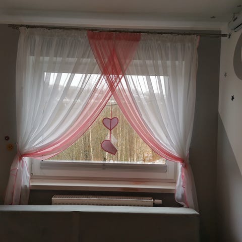 2 lengder gardiner ca 159cm lange og rullegardin ca B 107, H ca 140 selges.