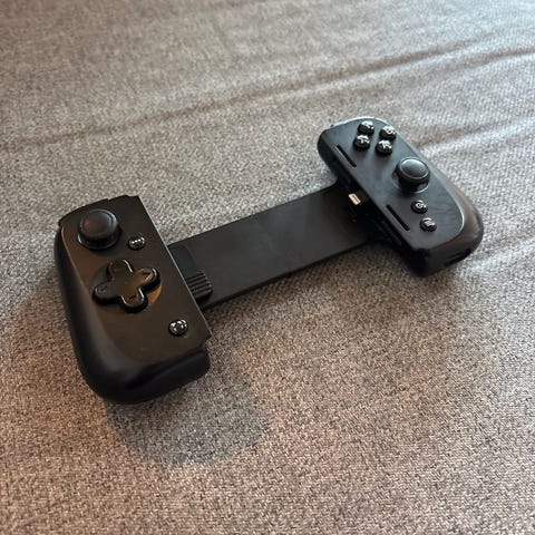 Kontrolleren er laget for iPhone med Lightning-port og har innebygd Lightning-kontakt i midten for direkte tilkobling til telefonen. Den har et uttrekkbart midtparti som gjør at den kan justeres i bredde for å passe ulike iPhone-modeller.