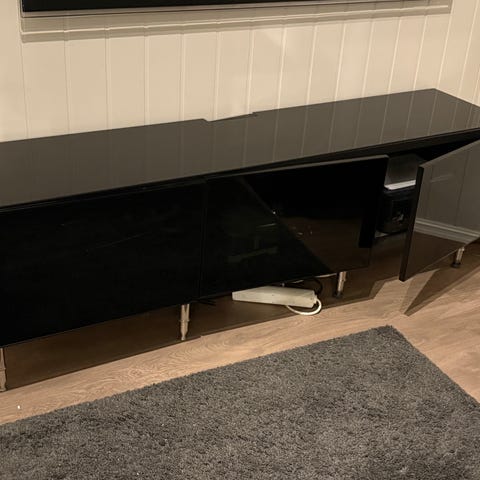 Svart tv-benk med 2 skuffer.