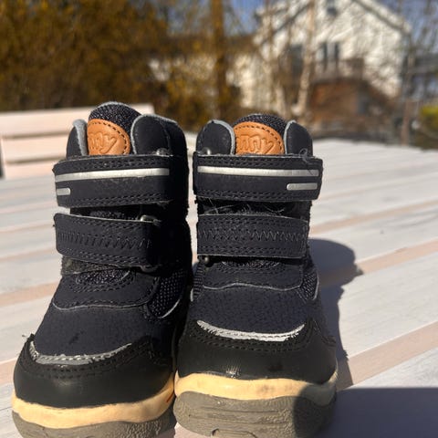 Veldig gode sko, myke rundt ankelen og lette å ta på små føtter. Brukt kort tid av minsten før han vokste ut av de. Nesten ikke synlig brukt. Nypris 1199kr