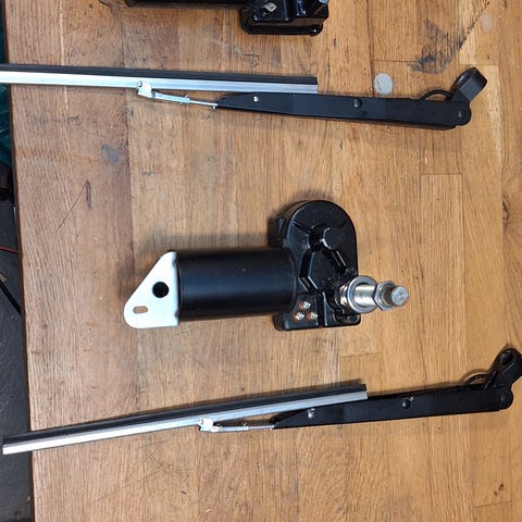 Vindusviskermotorer til båt. En helt ny 12v 83-120 grader, 2» aksel Nypris 1400kr og en brukt med 1» aksel. . Den brukte har stått i en Draco 1800 DC og er fullt overhalt og fungerer som den skal. Pusser arm og blad kan fås med på kjøpet. Begge selges samlet.