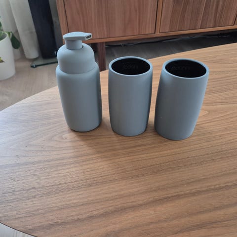Sett med sugekoppfeste, lys grønnfarge. "Kopp" til oppvaskbørsten, hylle til kluter og svamper, og en 3-1 krok til å henge opp f.eks. tørkematte eller kopphåndkle. Selges samlet.