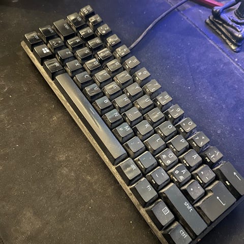 Selger lite brukt Steelseries apex pro mini. Etui følger med hvis ønskelig. Tastaturet har justerbare støtteben på undersiden og tilkobles med kabel. RGB-belysningen gir flerfargede lys effekter over tastene. Egnet til bruk med stasjonær PC eller bærbar PC der man ønsker et lite og plassbesparende tastatur med mekaniske taster.