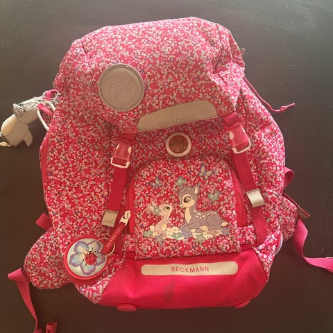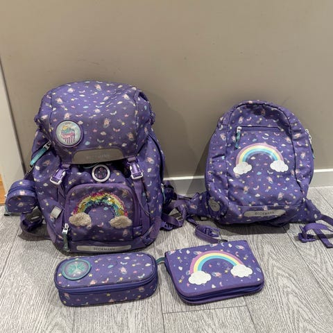 Fin skolesekk til de yngste. Pent brukt av ett barn. Regntrekk følger med.
