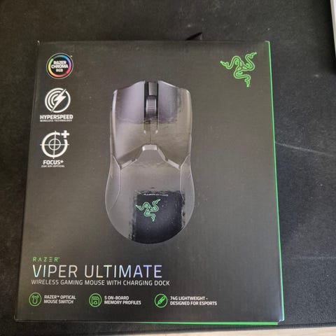 Selger razer Viper V2 Pro trådløs gamingmus svart. Standard utforming med rullehjul og flere knapper på siden. Egnet til bruk med stasjonær PC eller bærbar PC som tilleggsutstyr for generell kontorbruk eller gaming.