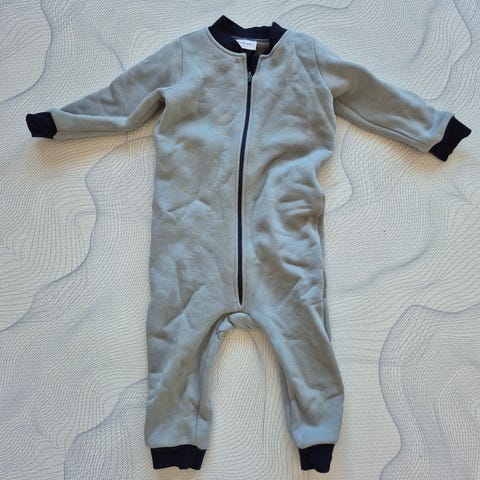 WoolLand heldress i ull for jente i størrelse 86./92.Dressen er rosa med kontrastdetaljer i en mørkere rosabrun farge, blant annet lomme med volangdetaljer foran og forsterkede knepartier. Glidelås i front gjør den enkel å ta av og på. Ribbekant ved hals og ermer for bedre passform. Materiale i ull som egner seg godt som innerste eller mellomste lag. Passer til hverdagsbruk og som kosedress inne eller under yttertøy på kjølige dager. Pent brukt, men har en svak flekk(se bilde)