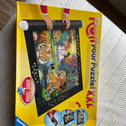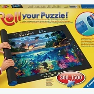 Ravensburger Roll Your Puzzle puslematte for oppbevaring og flytting av puslespill. Settet er egnet for puslespill fra 300 til 1500 brikker. Puslespillet legges på matten, rulles sammen rundt røret og kan deretter oppbevares eller flyttes uten at brikkene løsner. Praktisk løsning for å frigjøre bordplass mellom hver pusleøkt.